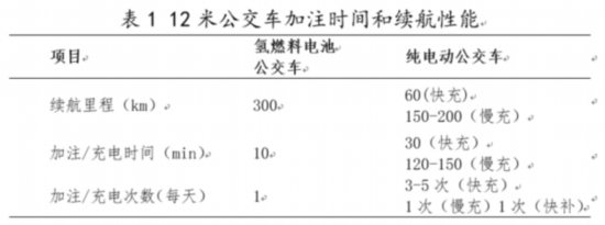 以12米公交車(chē)實(shí)際運(yùn)行的數(shù)據(jù)為例,加注/充電時(shí)間和續(xù)航性能對(duì)比如表1所示。