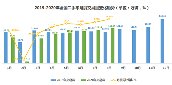 相比新車市場(chǎng),二手車市場(chǎng)表現(xiàn)不俗。8月,全國二手車市場(chǎng)交易量為133.67萬輛,環(huán)比增長5.96%,同比增長11.52%。中國汽車流通協(xié)會(huì)信息部主任李鑫表示,8月,二手車市場(chǎng)延續(xù)了“淡季不淡”的態(tài)勢(shì),銷量迎來年內(nèi)的新高。其原因在于,進(jìn)入第三季度,各行業(yè)逐漸開始進(jìn)入旺季,上半年受疫情影響積壓的消費(fèi)需求逐步開始釋放,二手車市場(chǎng)表現(xiàn)好于預(yù)期。