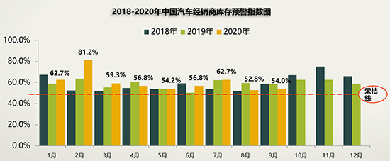 即便處于汽車市場(chǎng)的“金九”旺季,經(jīng)銷商的庫存壓力依然不小。昨日(10月13日),流通協(xié)會(huì)發(fā)布數(shù)據(jù)顯示,9月,國內(nèi)汽車經(jīng)銷商庫存預(yù)警指數(shù)為54.0%,較上月上升1.2個(gè)百分點(diǎn),較去年同期下降4.6個(gè)百分點(diǎn),庫存預(yù)警指數(shù)位于榮枯線之上。