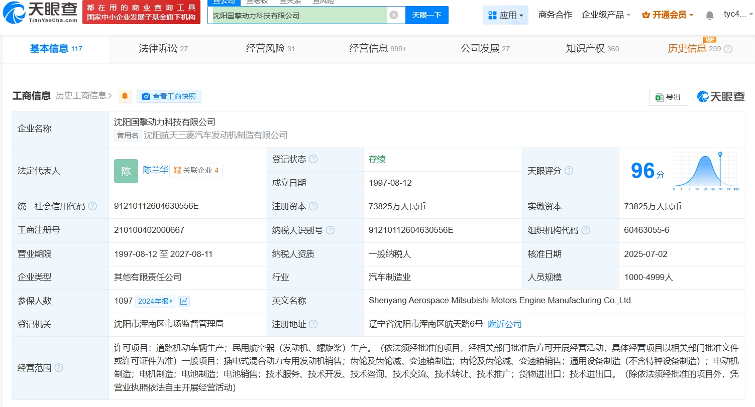 天眼查顯示,航天三菱已于今年7月2日更名為“沈陽(yáng)國(guó)擎動(dòng)力科技有限公司”,同時(shí)三菱商事株式會(huì)社、三菱自動(dòng)車工業(yè)株式會(huì)社、馬中投資控股有限公司均退出投資人之列,股東變更后的名單中出現(xiàn)北京賽苜科技有限公司。