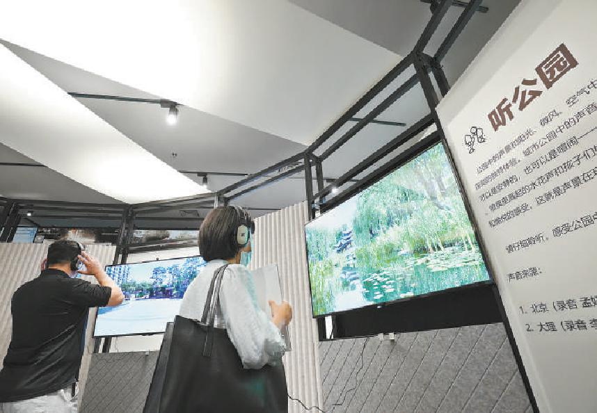 昨天,觀眾在北京城市建筑雙年展“未來之聲”展區(qū)體驗(方非/攝)