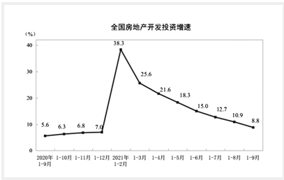 近日,國家統(tǒng)計局公布的最新全國房地產(chǎn)開發(fā)投資和銷售情況顯示,1月至9月,全國房地產(chǎn)開發(fā)投資112568億元,同比增長8.8%,比2019年1月至9月增長14.9%,兩年平均增長7.2%。其中,住宅投資84906億元,增長10.9%。