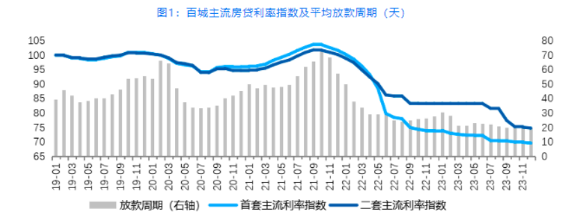 貝殼研究院監(jiān)測顯示,2023年12月百城首套主流房貸利率平均為3.86%,二套主流房貸利率平均為4.41%,分別較上月微降低1BP、2BP。12月首套、二套主流房貸利率較去年同期分別回落23BP和50BP。本月銀行平均放款周期為19天,與上月持平,維持2019年以來最快放款速度。