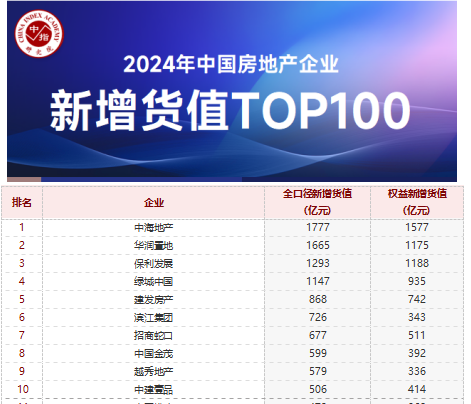 綜合多家機(jī)構(gòu)統(tǒng)計(jì),從新增貨值來看,中海地產(chǎn)、華潤置地和保利發(fā)展位列前三。2024年,中海地產(chǎn)以1777億元新增貨值占據(jù)榜單第一,華潤置地、保利發(fā)展分別以1665億元、1293億元,位列第二、第三名。