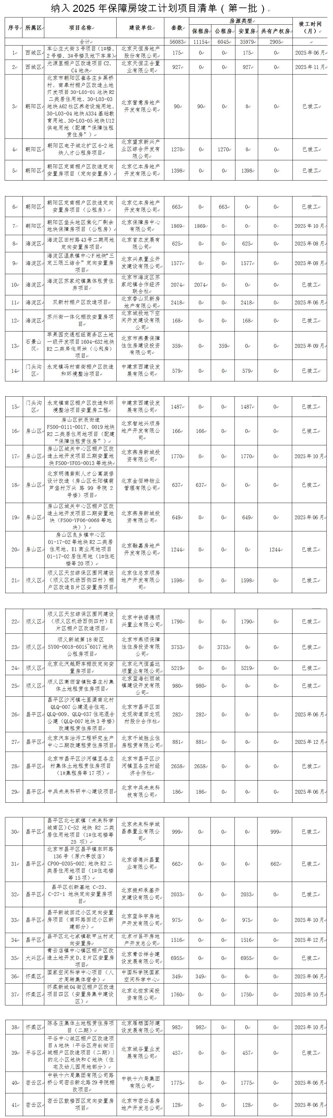(2025年保障房竣工計劃項目清單(第一批),圖源:北京市住建委)