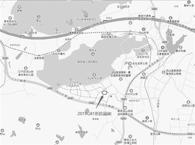 在昨天拍賣的9幅地塊中,位于江寧湯山街道的2019G81地塊并不起眼,甚至你在地圖上都很難找到它的具體位置——東北至無疆路,東南至萬壽路,西南至樂泉路,西北至美樂路。這四條道路無論是在百度地圖還是高德地圖上,你都找不到它們的蹤影。