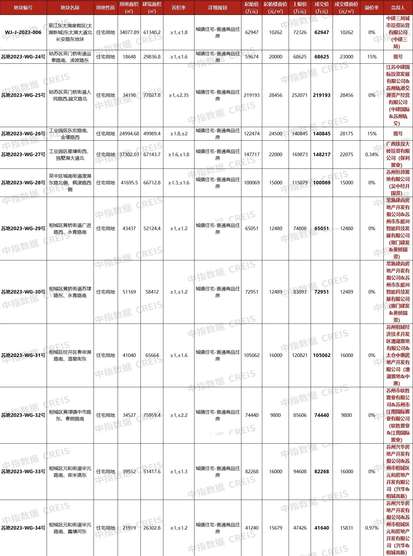 此外,相城區(qū)蘇地2023-WG-34號(hào)元和地塊由興華、相城高新聯(lián)合體以4.164億摘得,樓面價(jià)15679元/平方米,溢價(jià)率0.97%,占地面積2.2萬(wàn)平方米,容積率1-1.2。