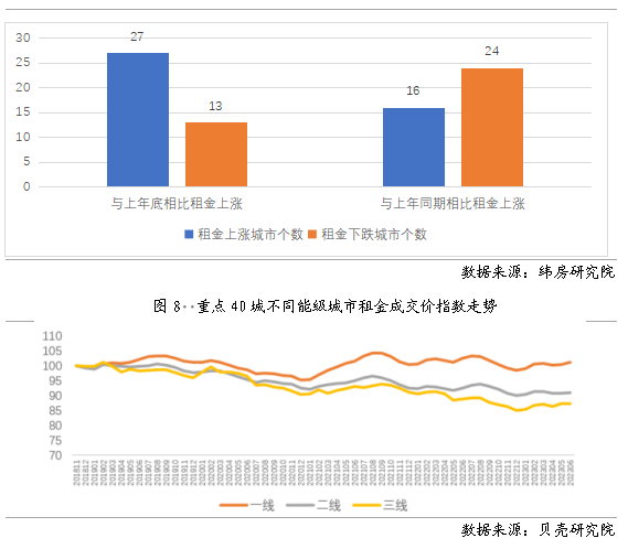 分城市來看,上半年多數(shù)城市住房租賃市場活躍度同比提高,但租金還未回升至去年同期水平。