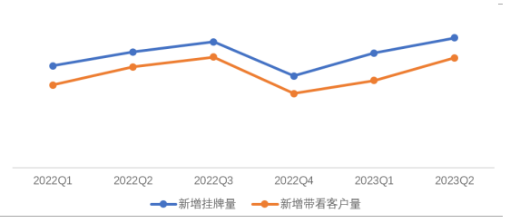 圖4 重點(diǎn)40城新增掛牌量、新增帶看客戶量走勢