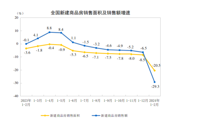 國(guó)家統(tǒng)計(jì)局?jǐn)?shù)據(jù)顯示,1-2月全國(guó)房地產(chǎn)開(kāi)發(fā)投資累計(jì)同比繼續(xù)下降,但降幅相比于2023年全年有所收窄。