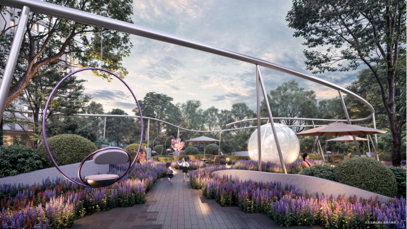 其景觀園林以“風谷之境”為主題,打造一系列具有動感的主題場景。像三期南側(cè)將建設(shè)一個“風速運動場”,周邊種植高大喬木,業(yè)主可以在綠蔭下享受運動帶來的舒適。英式花園“風吟花園”則配備了秋千、卡座等,讓孩子們的歡樂和笑聲在綠植花徑中暈開。地勢高、低容積率,疊加較大樓間距,北熙區(qū)三期產(chǎn)品的布局在保障樓宇之間采光、通風的同時,為業(yè)主提供出門可親享空中綠島的自然生活體驗感。