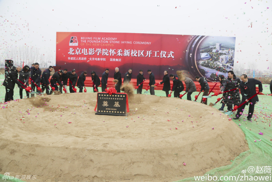 12月25日,北京電影學(xué)院懷柔新校區(qū)開(kāi)工儀式舉行。趙薇、黃渤作為資深校友現(xiàn)身奠基儀式,穿羽絨服鏟土。趙薇贊“地杰人靈之地!”