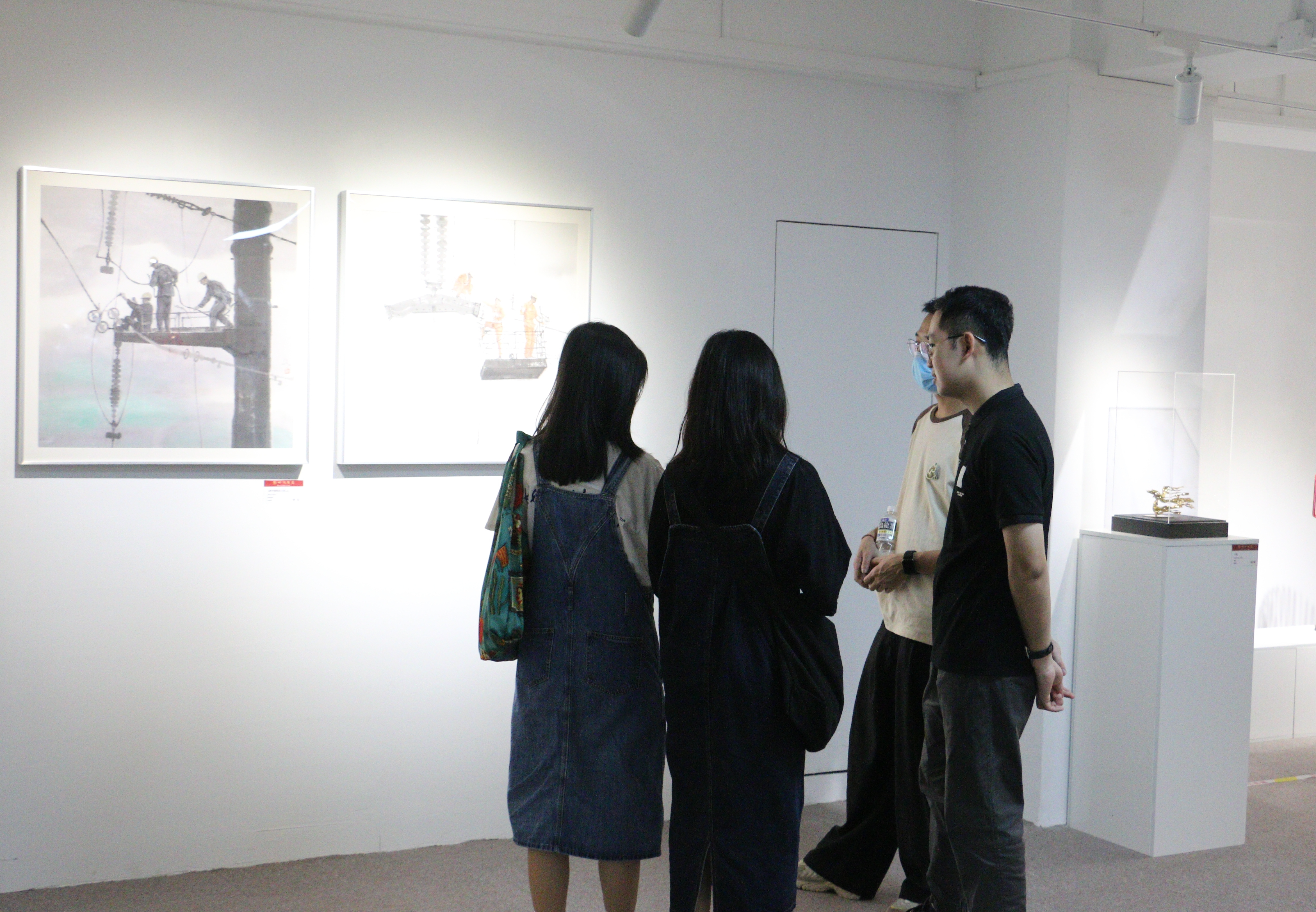 展覽現(xiàn)場(chǎng) 藝術(shù)家用創(chuàng)新的手法、新穎的視角真實(shí)地反映了當(dāng)代電網(wǎng)勞動(dòng)者的日常工作、生活場(chǎng)景以及所取得的驕人成績(jī),詮釋了當(dāng)代南方電網(wǎng)人“人民電業(yè)為人民”的初心使命,在電力主題的創(chuàng)作中記錄了新時(shí)代南方電網(wǎng)在產(chǎn)頭中全面貫徹新發(fā)展理念,表達(dá)了人與自然人與人、人與社會(huì)的和諧共生、全面發(fā)展的美好愿景。