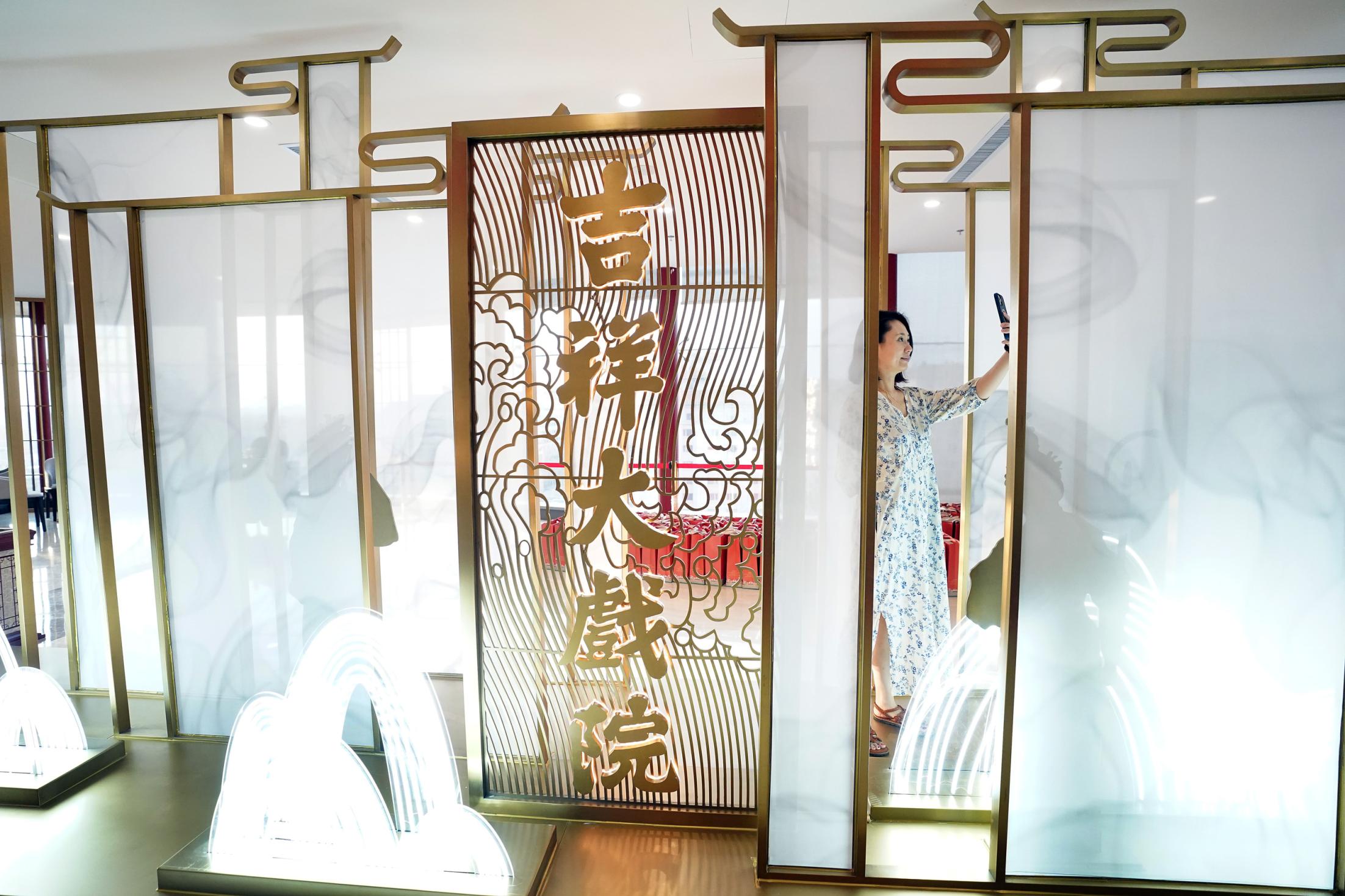 “在燈光、音響設(shè)備方面,新建成的吉祥大戲院運用了很多‘黑科技’,再加上特殊的裝修和裝飾,構(gòu)建起了聲場上的原聲劇場,演員表演可以不戴麥克風(fēng)?!奔榇髴蛟憾麻L富博洋說。這里并非當(dāng)下常見的大型扇形劇場,長方形的空間里,300多個座席分為上下兩層,觀眾無論坐在哪一排,與舞臺之間的距離都不算遠。