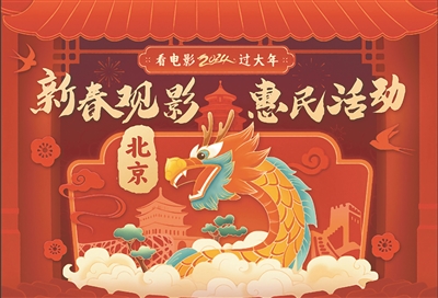 龍年將至,為豐富市民新春文化娛樂活動,繁榮首都電影市場,北京市將發(fā)放2000萬元觀影補貼,舉辦“看電影過大年——北京新春觀影惠民活動”。
