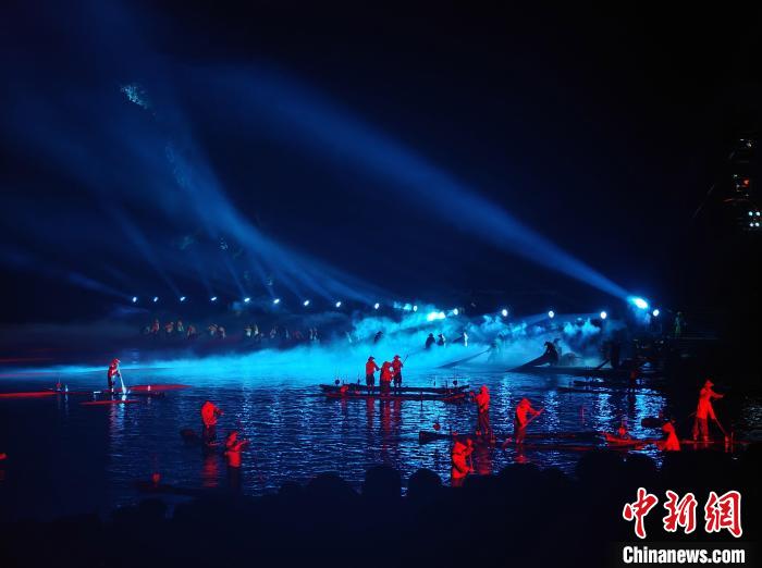 《印象·劉三姐》歡慶公演20周年現(xiàn)場。 周利朔 攝 據(jù)了解,《印象·劉三姐》由張藝謀、王潮歌、樊躍導(dǎo)演,梅帥元總策劃,題材取自廣西歌仙“劉三姐”的傳說,將漓江沿岸的自然風景、漁民的生活勞作、少數(shù)民族的民俗風情等,通過視覺效果和藝術(shù)編排進行融合呈現(xiàn),于2004年3月20日正式公演。 據(jù)《印象·劉三姐》品牌運營總監(jiān)謝辰飛介紹,公演至今,《印象·劉三姐》累計演出超8000場次,接待外賓300萬人次,接待觀眾2000萬人次。 作為中國第一部大型山水實景演出,《印象·劉三姐》自首次公演以來,一直保持著“全國文化演出行業(yè)觀眾接待量最多、影響力最大、年營業(yè)額最高”的實景演藝市場地位,成為廣西乃至中國的旅游名片之一,也成為保護好漓江生態(tài)環(huán)境實現(xiàn)可持續(xù)發(fā)展的成功范例之一。項目曾榮獲中國首批“國家文化產(chǎn)業(yè)示范基地”“十大最具影響力國家文化產(chǎn)業(yè)示范基地”等多項榮譽。2024年,《印象·劉三姐》入選首批“桂林經(jīng)典”名錄。
