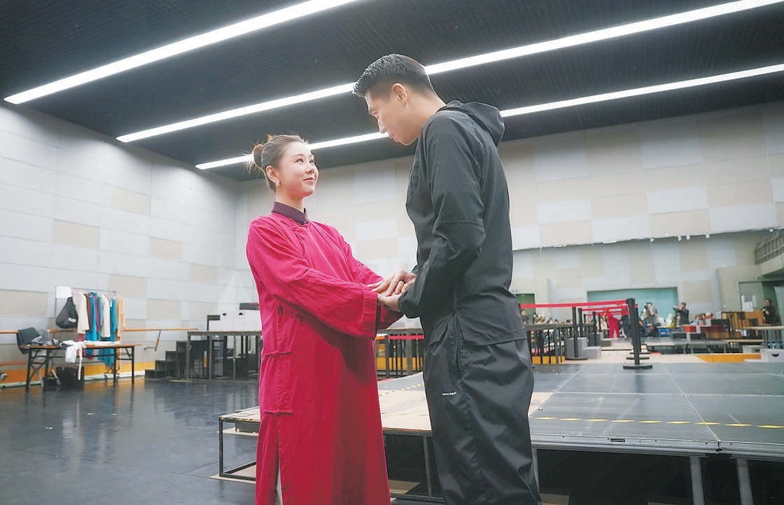 層疊的階梯、平臺(tái)把排練廳分割出高低錯(cuò)落的空間,演員們穿行其間,走位自然帶上了一種落差感——這如同對(duì)主角鄧世昌心境的暗喻?!叭绻f《林則徐》講述的是幾位能左右國家命運(yùn)的大人物的斗爭(zhēng),那么《鄧世昌》就像一個(gè)人的戰(zhàn)爭(zhēng)?!眻?zhí)導(dǎo)兩部作品的導(dǎo)演王筱頔說。
