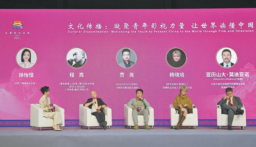 2024北京文化論壇以“文化傳播:凝聚青年影視力量 讓世界讀懂中國”為主題的文化沙龍舉辦。圖為以《影視青春化表達助力城市文化品牌建設(shè)》為主題的圓桌論壇。記者 程功攝