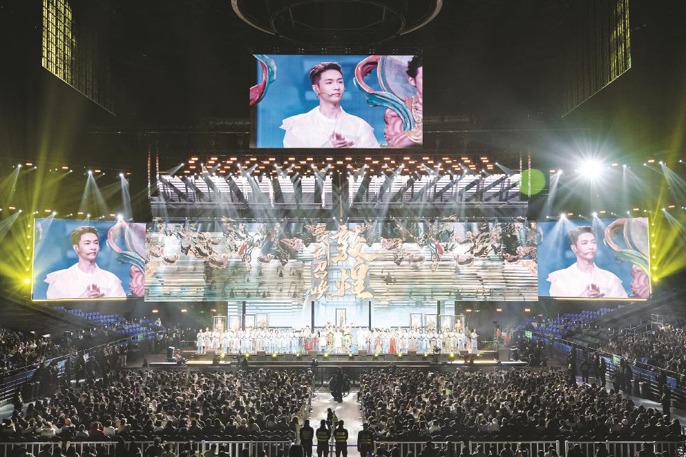 連續(xù)三晚,以數(shù)字多媒體營造“敦煌空間”,用多元風(fēng)格的歌舞訴深情,這場百年追尋、千年回響將人們引入一個與我們所有人相關(guān)的敦煌。當(dāng)音樂話劇的形態(tài)與敦煌在數(shù)字時代的煥新達(dá)成內(nèi)在氣質(zhì)的高度契合,一次又一次,中華文脈在青春的律動中擁抱觀眾。