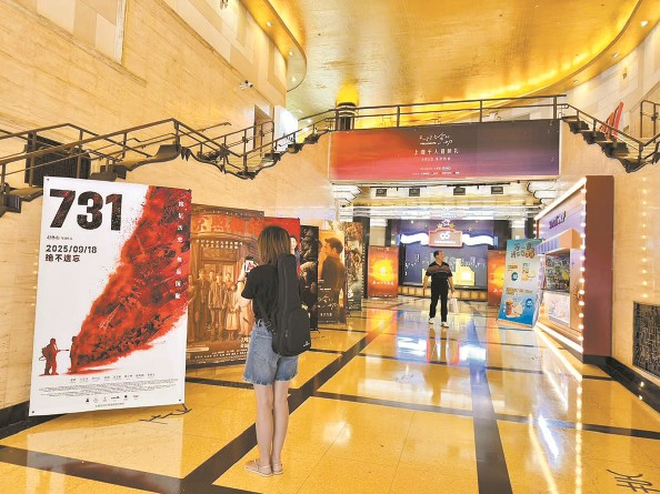 影迷在大光明電影院的電影海報(bào)前駐足 新民晚報(bào)記者 李永生 攝