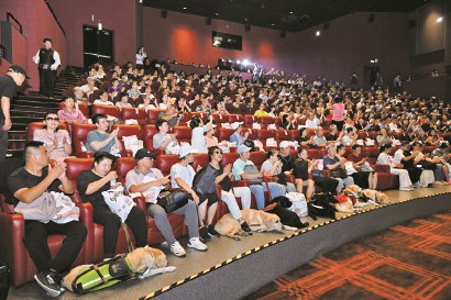 在志愿者引導下,導盲犬的主人在影廳第一排坐下,犬只安靜趴在腳邊。整個影廳360多個座位幾乎滿座。與日常觀影不同,這里的觀眾幾乎都是視障者,影廳一角還配備了專門的現(xiàn)場解說團隊。當燈光暗下,銀幕亮起,除了影片本身的臺詞和配樂,現(xiàn)場還響起了一道溫暖的人聲,描述著人物的表情、場景的變換、動作的細節(jié)……