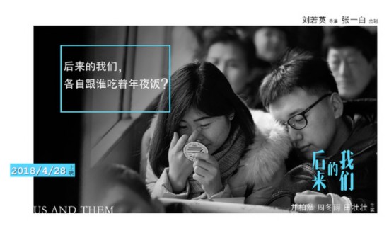 劉若英導演電影處女作《后來的我們》昨天(11日)發(fā)布第一波海報與預告,并宣布定檔4月28日。該片由張一白監(jiān)制,井柏然、周冬雨領銜主演,田壯壯主演。值此春運回家高峰期發(fā)布的系列海報,用質(zhì)問的方式帶出人生與春運的現(xiàn)實主題:〝為什么只有過年,才會想到回家?〞、“為什么討厭春運,卻還要回家?”、“為什么在擁擠的人群里,還覺得自己孤身一人?”等,直戳觀眾內(nèi)心,引發(fā)熱議。劉若英導演也希望透過春運的提問,讓這個愛情故事更貼近現(xiàn)實生活與人生感動。