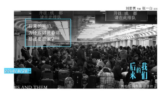 此次系列海報以紀實風格的黑白圖片,搭配著“為什么只有過年,才想到回家?〞,“為什么討厭春運,卻還要回家?”等令人深思的質(zhì)問文案,在導演劉若英與監(jiān)制張一白聯(lián)手發(fā)力下,不僅讓井柏然周冬雨置身真實春運場景,成為了千千萬萬普通回家人群中的一員,同時也讓普通人成為了此次系列海報的主角。突顯出電影現(xiàn)實主義氣質(zhì)。正值春節(jié)將至,春運高峰,人們紛紛踏上回家的路的時刻,電影《后來的我們》系列海報更是觸及正在趕路的觀眾內(nèi)心深處關于春運的隱痛和感動。