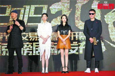 孫紅雷(右一)、萬茜、徐兵(左一)等人為電視劇《新世界》站臺。