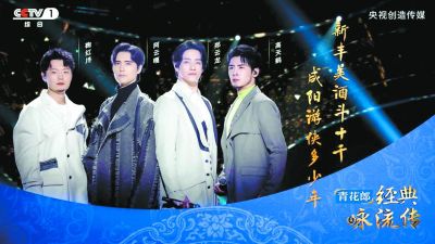 阿云嘎、鄭云龍、鞠紅川、高天鶴首度同框現(xiàn)身《經(jīng)典詠流傳》,以“阿龍川鶴”四重唱的形式歌詠古今少年的滿腔壯志豪情。四人演繹的《少年行》極具情感張力,一句“縱死猶聞俠骨香”唱得蕩氣回腸,讓人感受到少年游俠鮮衣怒馬的英雄氣概。隨著旋律,詩佛王維這首筆墨酣暢的豪放詩篇也得以重新煥發(fā)出蓬勃的生命力。