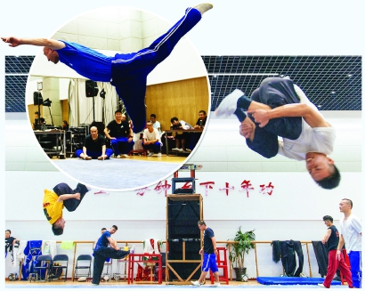 “夏季集訓能夠明顯提高武戲的質量,演員們都干勁十足?!倍F團長李笑陽對記者說,“此次與昆團同場練功也是找差距、取長補短的好機會?!贝朔├ズ暇?,為的就是武戲中的經典《雁蕩山》。沒有一句臺詞和唱腔的《雁蕩山》全憑演員過硬的武戲實力呈現(xiàn),從陸戰(zhàn)中的兵器對打、水戰(zhàn)里的“翻連環(huán)”“砸三險”“竄九毛”,到攻城里的跟頭組合,無不考驗功底。