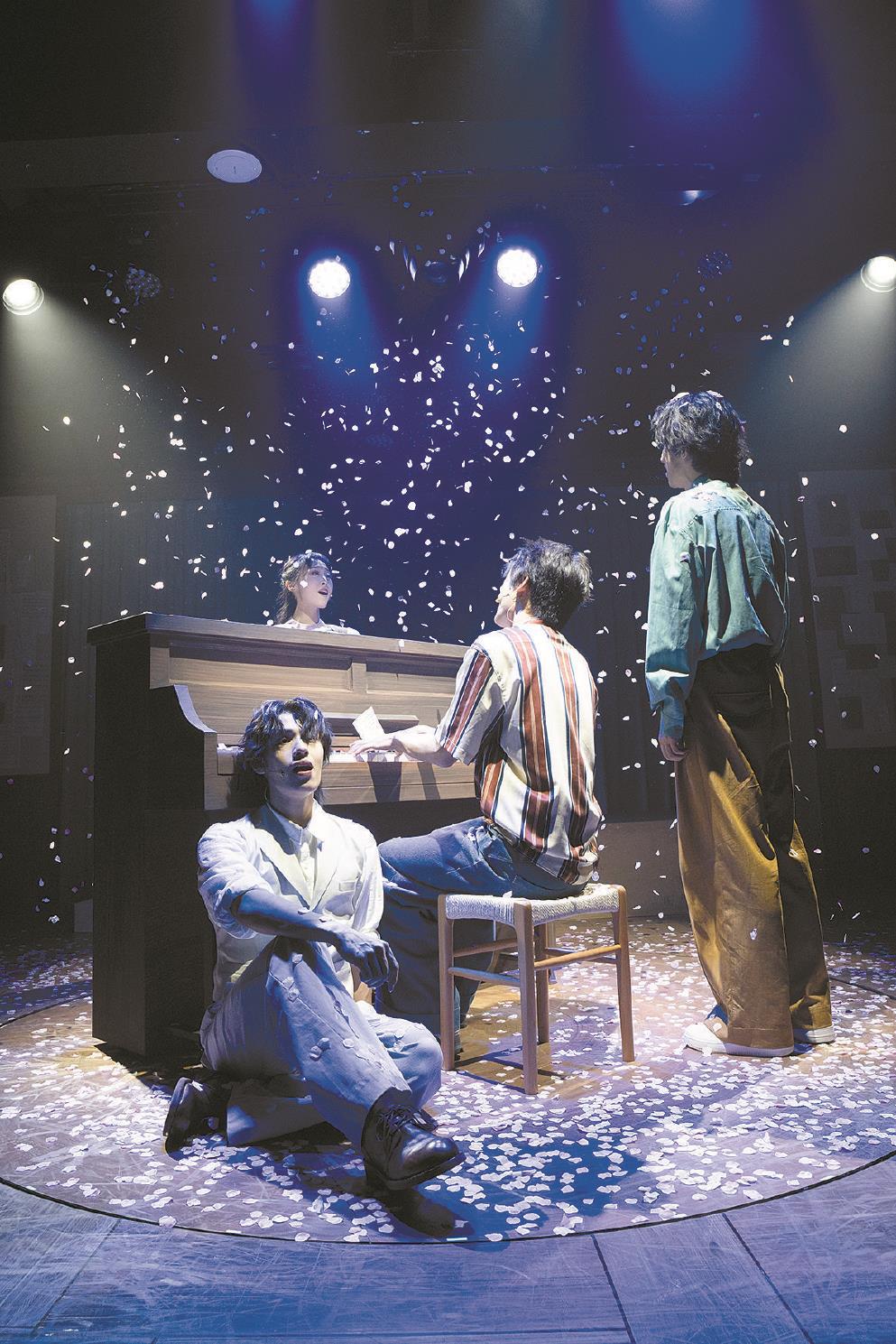 他們是用什么連接起那看似“前世有緣”的兩個故事的呢?主要不是“緣分”或“天命”,而是兩個藝術(shù)家的創(chuàng)作——就像制作該劇的“劇伙”主創(chuàng)團(tuán)隊(duì)自己所做的一樣。這個團(tuán)隊(duì)包括導(dǎo)演編舞劉曉邑,編劇作詞黃菀卿、陶倩妮、薛敏,作曲編曲徐肖、姚旭之,制作人和曉維,出品人張博禹。就像一面他們自己的鏡子,這是一部展示音樂劇創(chuàng)作過程的“元戲劇”(Meta-theatre)。
