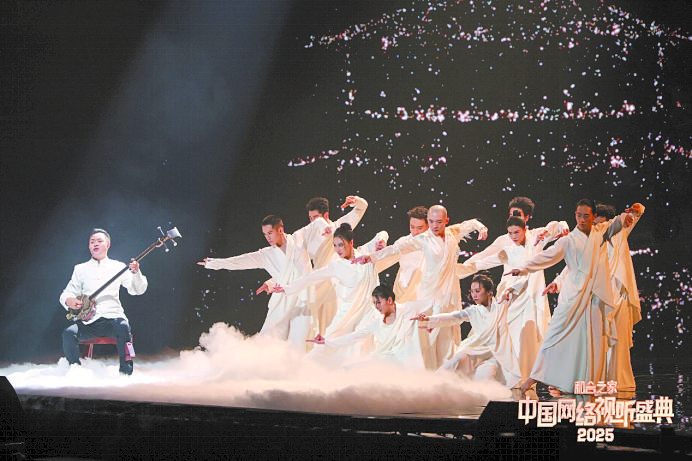 《塔》以“情景式唱演+舞蹈”的表演形式,展現(xiàn)“見塔、見人、見心”的意義?!笆赝拿骷词恰烀??!薄端返牟邉潉?chuàng)作團(tuán)隊表示,舞臺上《黑神話:悟空》和時代精神的互通、轉(zhuǎn)譯,“守塔人”與“天命人”完成使命,找到了內(nèi)心的那座“塔”。