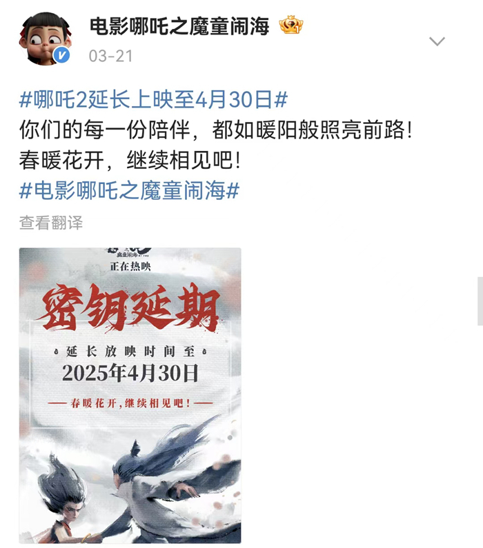 延長上映的《哪吒之魔童鬧海》與即將重映的《熱烈》,成為這個清明檔不可小覷的隊伍。上映近兩個月來,《哪吒之魔童鬧?!芬廊焕卫巫€(wěn)票房日冠,不斷刷新影史記錄,為了更好的觀看體驗,許多觀眾“為一塊屏奔赴一座城”,在清明節(jié)假期,這樣的影旅聯(lián)動依然有可能繼續(xù)。