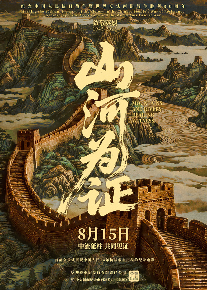 在紀念中國人民抗日戰(zhàn)爭暨世界反法西斯戰(zhàn)爭勝利80周年的重要歷史時刻,紀錄電影《山河為證》正式宣布定檔,將于2025年8月15日登陸全國院線。影片由華夏電影發(fā)行有限責任公司與中央新聞紀錄電影制片廠(集團)出品,同步發(fā)布定檔版海報。