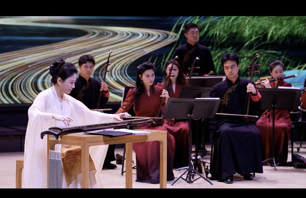 音樂(lè)會(huì)上,復(fù)刻春秋古制的古琴與珍稀老琴同臺(tái)亮相。古琴演奏家路寧攜手中央民族樂(lè)團(tuán)演奏家們,以《源》《神游》《清泠》《醉枕石》《云水吟》等8首全新編創(chuàng)作品為紐帶,讓古琴清微淡遠(yuǎn)的音色與大運(yùn)河“流動(dòng)史詩(shī)”的氣質(zhì)深度相融,完成跨越時(shí)空的對(duì)話。