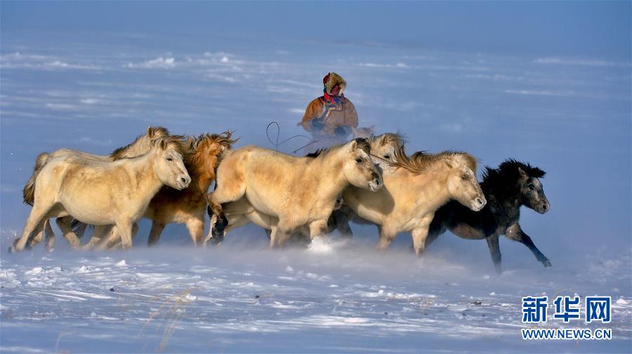 1月5日,蒙古族牧民在套馬。當(dāng)日,2016年烏珠穆沁馬文化節(jié)在內(nèi)蒙古錫林郭勒盟西烏珠穆沁旗吉仁高勒鎮(zhèn)舉行。當(dāng)?shù)孛晒抛迥撩裆碇A麗的民族服飾,帶著馬匹從四面八方趕到會(huì)場(chǎng),參加賽馬、套馬、乘馬拾物、蒙古馬選美等多項(xiàng)具有民族特色的活動(dòng),吸引大批游客前來(lái)觀看。新華社記者 任軍川 攝