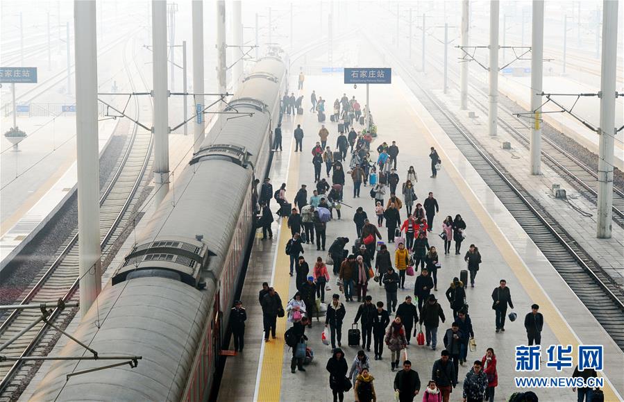 一輛動車組列車駛離石家莊火車站(1月9日攝)。 1月10日零時起,全國鐵路實行新的列車運行圖,增開旅客列車285.5對,其中增開動車組列車281.5對。運行圖調(diào)整后,全國鐵路開行旅客列車總數(shù)達到3142對,其中動車組列車1980.5對。新華社記者 牟宇 攝