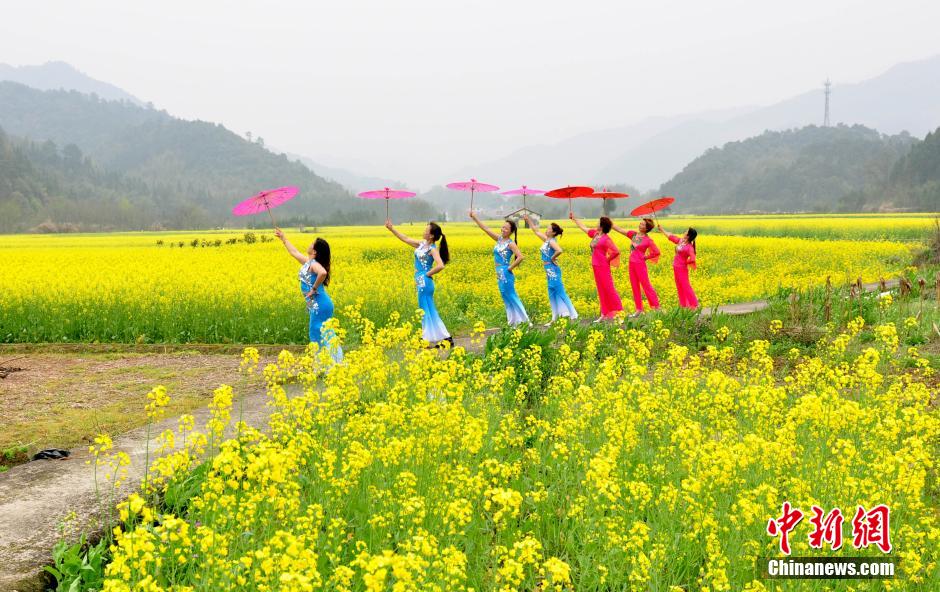 3月20日,江西省德興市海口鎮(zhèn)杜村婦女在田間花?!白咝恪薄.?dāng)日,江西德興市??阪?zhèn)杜村一批家庭婦女以千畝油菜花海為舞臺(tái),展示自己的才藝形象,希望宣傳家鄉(xiāng)的自然生態(tài)與人文歷史,擴(kuò)大旅游知名度和影響力。德興市??阪?zhèn)杜村交通便利,自然風(fēng)光優(yōu)美,村內(nèi)有歷史古跡和名木古樹。 胡敦煌 攝