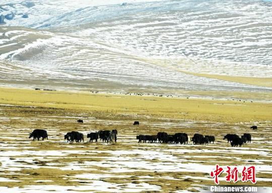 圖為“春雪牧歌圖”中成群結(jié)隊(duì)的牦牛。牛志恩 攝