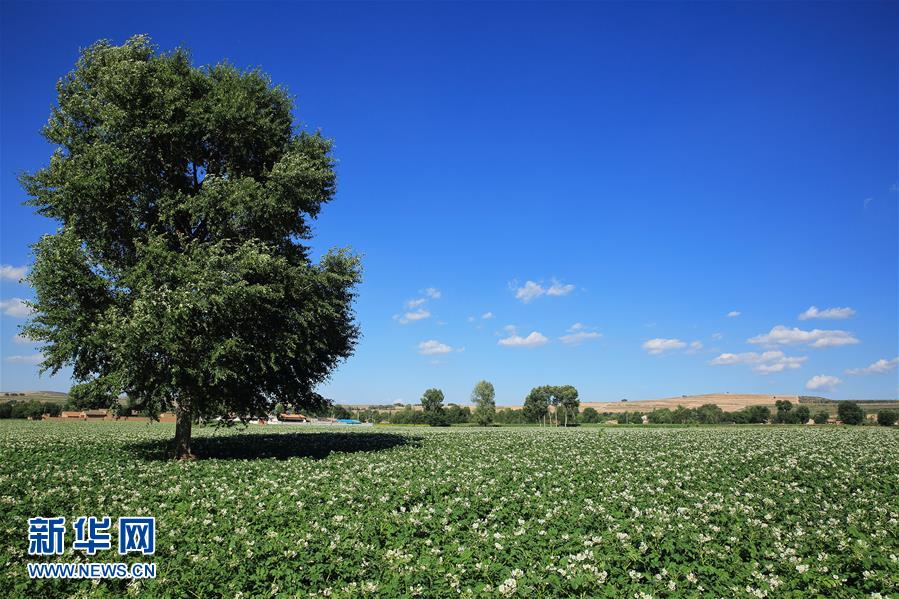 盛夏時節(jié),中國馬鈴薯之鄉(xiāng)甘肅定西的馬鈴薯進(jìn)入開花期,眾多白色的花朵扮美田野。 新華社發(fā)(陳永剛 攝)