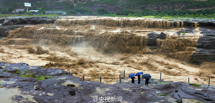 受上游強降雨和水庫放水影響,最近幾天,黃河壺口瀑布迎來伏汛,最大水流量達到每秒2600立方米左右,濁流滾滾奔騰而下,氣勢磅礴!(央視記者李志 文豪)