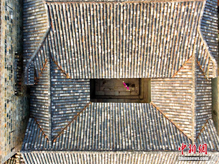 12月10日,航拍位于江西金溪縣有著600多年歷史的中國(guó)歷史文化名村、中國(guó)傳統(tǒng)村落竹橋古村,俯瞰全村,形似一柄巨扇。該村現(xiàn)保存有明代所建民居8幢,明代祠堂1幢,其余為清代建筑,青磚灰瓦,樸實(shí)素雅,為贛派建筑最典型的代表。村前溪水長(zhǎng)流,良田萬頃,村后茂林修竹,鳥鳴樹幽,身歷其境,如入畫中。傅建斌 攝