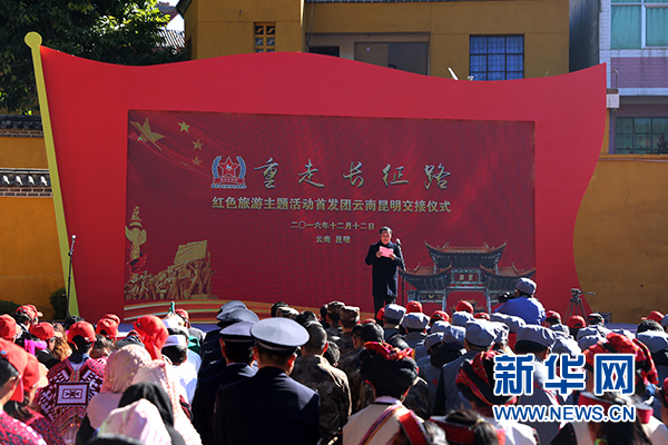 新華網(wǎng)昆明12月13日電(記者 韓攀)12月12日,“重走長(zhǎng)征路”紅色旅游主題活動(dòng)首發(fā)團(tuán)云南昆明交接儀式在尋甸柯渡丹桂村紅軍長(zhǎng)征柯渡紀(jì)念館舉行。本次主題活動(dòng)由國(guó)家旅游局主辦,是在中國(guó)工農(nóng)紅軍長(zhǎng)征勝利80周年之際,通過紀(jì)念紅軍長(zhǎng)征歷史、緬懷先烈,宣傳長(zhǎng)征精神,推廣紅色旅游線路,同時(shí)充分展示長(zhǎng)征沿線地區(qū)旅游業(yè)及經(jīng)濟(jì)發(fā)展成就。