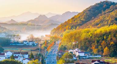 2024年12月1日,安徽省蕪湖市繁昌區(qū)孫村鎮(zhèn)中分村,錯(cuò)落有致的民居與山巒疊嶂、蜿蜒道路、炊煙晨霧等在朝陽的照射下相映成景,宛若人間仙境。肖本祥攝(人民圖片網(wǎng))