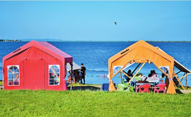 近年來,哈爾濱不斷挖掘歷史底蘊(yùn),加快歷史文化街區(qū)改造和老建筑活化利用。文旅新題材新亮點(diǎn)不斷涌現(xiàn),哈爾濱旅游逐步實(shí)現(xiàn)從“冬季爆點(diǎn)”向“四季長紅”轉(zhuǎn)型。圖為人們在哈爾濱市松花江畔的帳篷中消暑休閑。