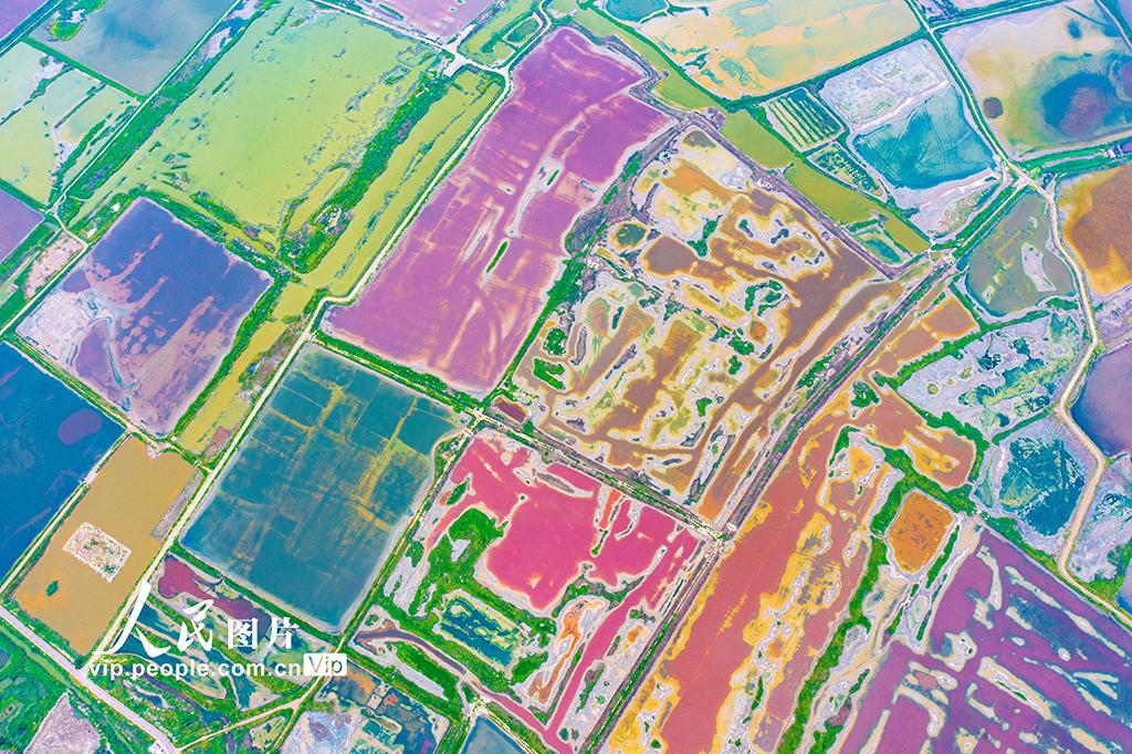 2025年9月2日,山西省運(yùn)城鹽湖呈現(xiàn)出色彩斑斕的景象。