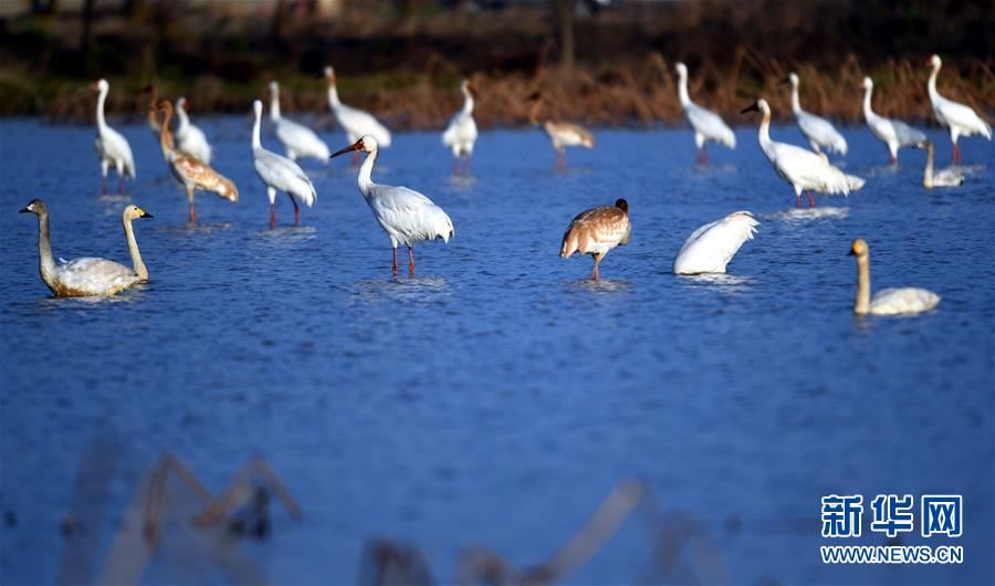 受新一輪北方冷空氣南下影響,江西鄱陽湖越冬候鳥數(shù)量激增,一年中最佳的觀鳥時節(jié)到來。江西鄱陽湖國家級自然保護區(qū)管理局近日監(jiān)測顯示,飛抵保護區(qū)的候鳥總數(shù)達(dá)到16萬只,主要包括大雁、小天鵝、白鶴、東方白鸛等。