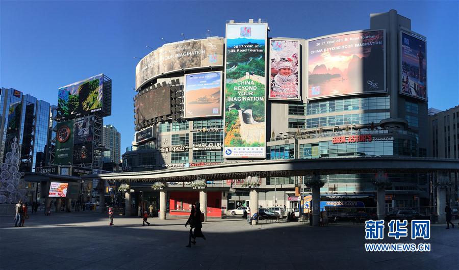 這是1月1日在加拿大多倫多市中心的鄧達(dá)斯廣場拍攝的“美麗中國——2017絲綢之路旅游年”主題宣傳廣告牌。從2016年12月26日起,由中國國家旅游局推出、以“美麗中國——2017絲綢之路旅游年”為主題的大型旅游宣傳廣告在加拿大多倫多市中心鄧達(dá)斯廣場亮相,向人們展示中國美麗而豐富的旅游資源。整個活動將持續(xù)5周。新華社發(fā)(鄒崢攝)