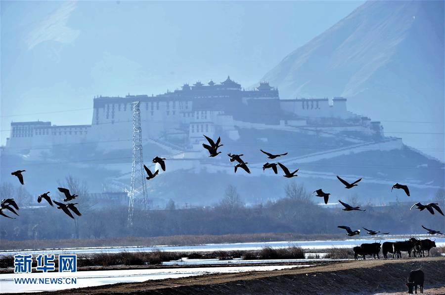 水鳥飛翔在拉魯濕地上空(1月7日攝)。入冬以來(lái),位于拉薩城邊的拉魯濕地國(guó)家級(jí)自然保護(hù)區(qū)候鳥增多,斑頭雁、赤麻鴨、野鴨等數(shù)十種候鳥在這里過(guò)冬。拉魯濕地國(guó)家級(jí)自然保護(hù)區(qū)海拔3600多米,總面積12.64平方公里,是中國(guó)海拔最高、面積最大的城市天然濕地,被譽(yù)為“拉薩之肺”。新華社記者 張汝鋒 攝