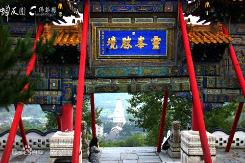 沿一百零八級(jí)石階登高,按照佛家的說法,就把人間的一百零八種煩惱踩在腳下了。置身牌樓下,手撫門柱,回身四望,遠(yuǎn)處的山,山上的云,近處的清水河,雄壯多姿的寺廟建筑群,都收入眼中,深感“靈峰勝境”四個(gè)字點(diǎn)得妙。這里,是很好的登高覽勝的觀景點(diǎn)。一九四八年春,黨中央機(jī)關(guān)從延安開赴河北省西柏坡,途中路過五臺(tái)山,陳毅同志作詩道:“本不游五臺(tái),迂道時(shí)日緊,至今有余歡,曾踏菩薩頂。”